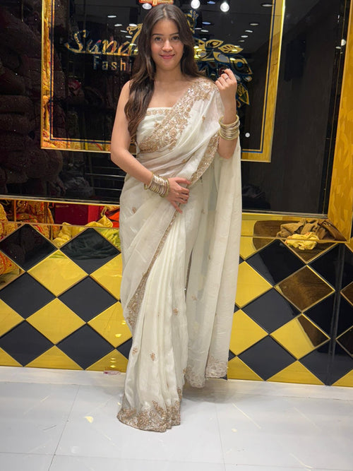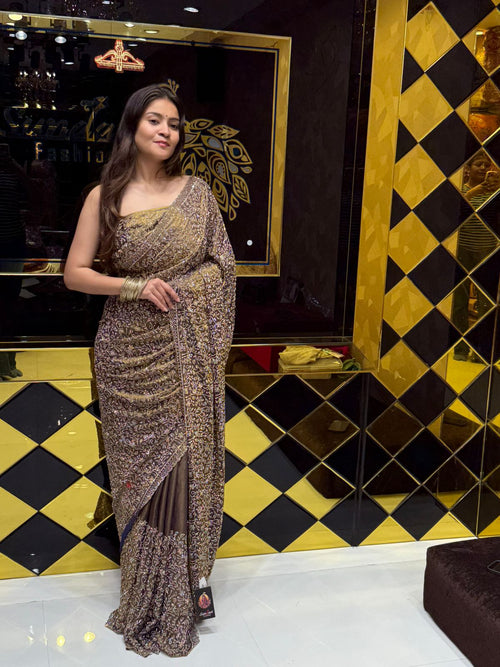 Dual Shade Sunshine Handwork Pure Chiffon Saree (112)