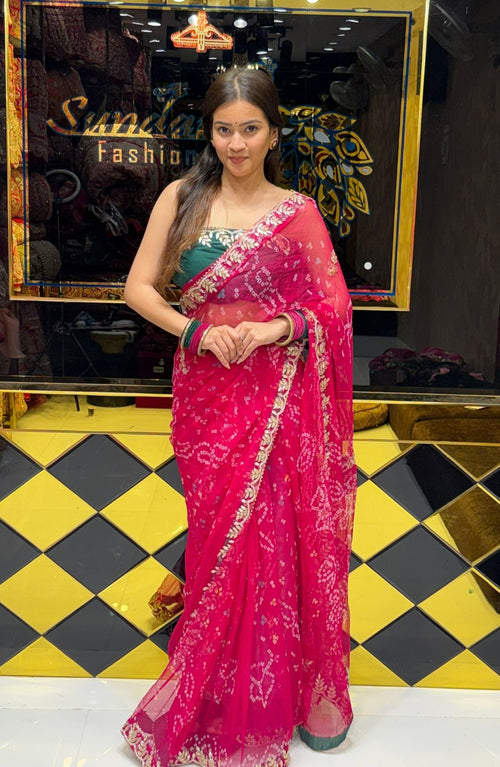 Pink Colour Pure Chiffon Bandhani Heavy Handwork Saree (178)