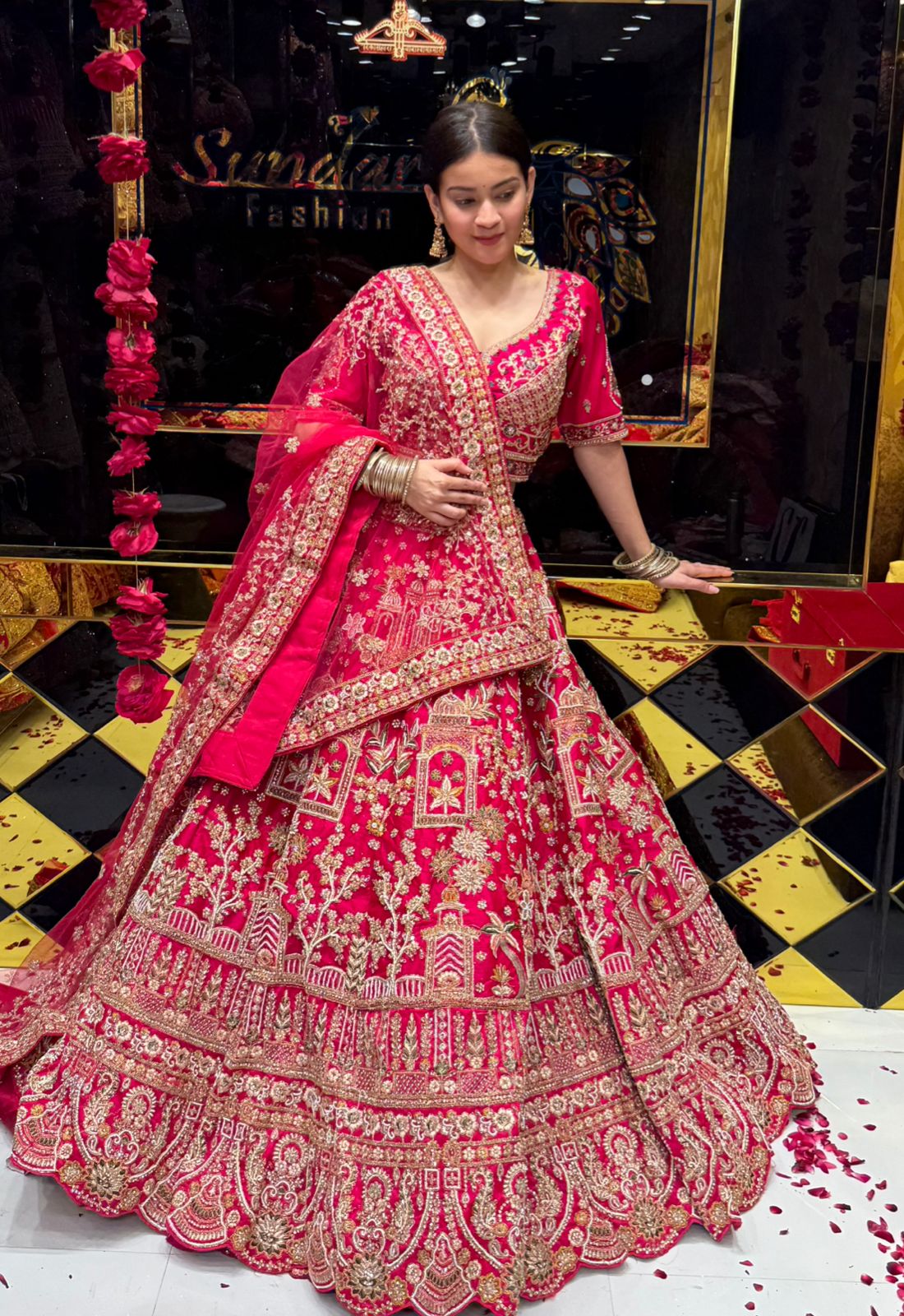 Hot Pink Premium Handwork Lehenga Set (128)
