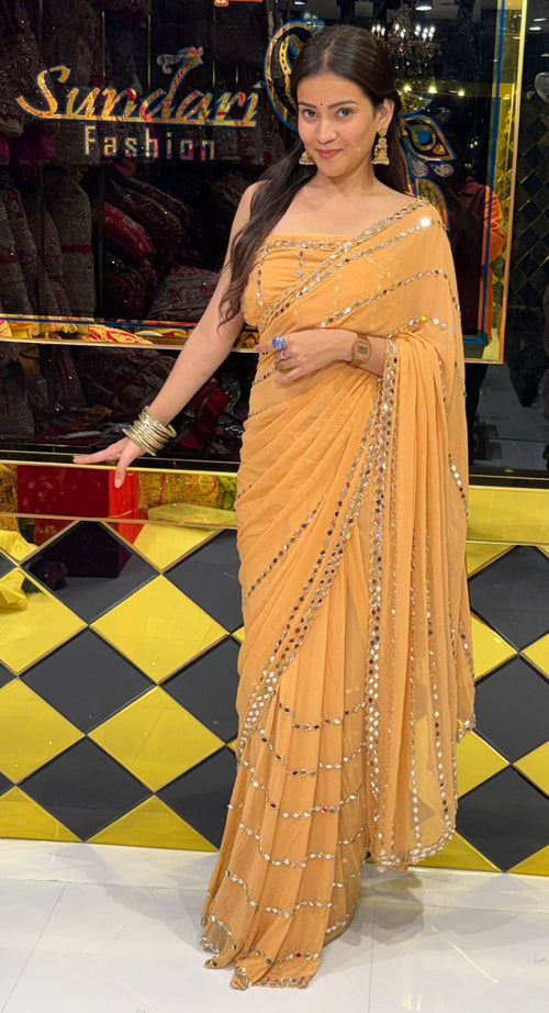 Orange Premium Khaddi Chiffon Handwork saree (229)